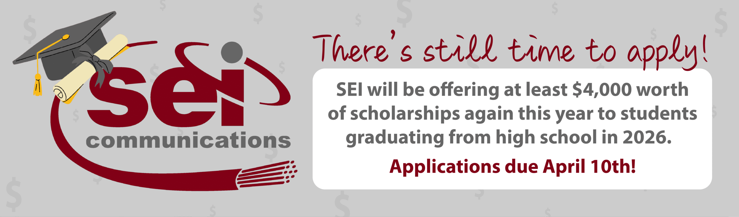 We are excited to announce our 34th year of awarding $500 scholarships to graduating high school seniors in our area! SEI enjoys working with local schools to assist students in reaching their educational goals through this program.